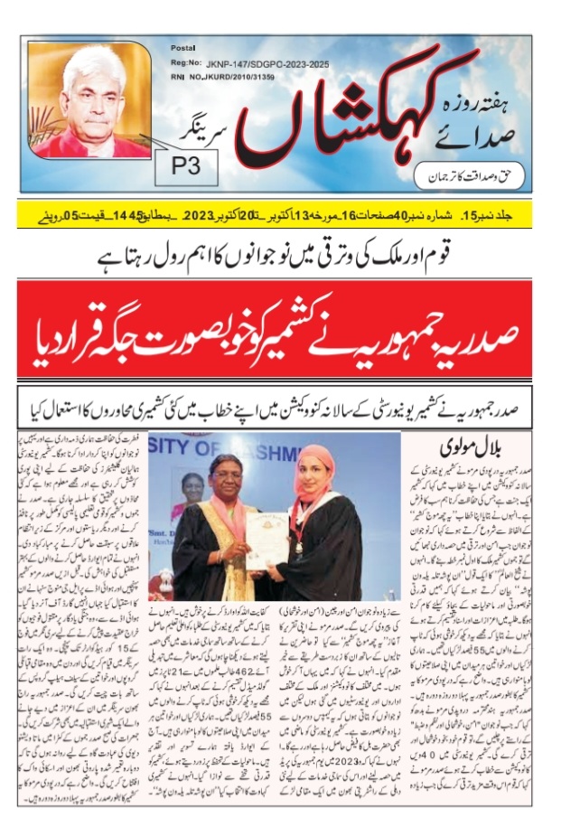 157 شیئر کریں فیس بک ٹویٹر واٹس ایپ Print Issue Newspaper Sada e Kehkashan 13th Oct 2023 Muzaffar Ahmad Khan اکتوبر 13, 2023October 13, 2023 0 تبصرے